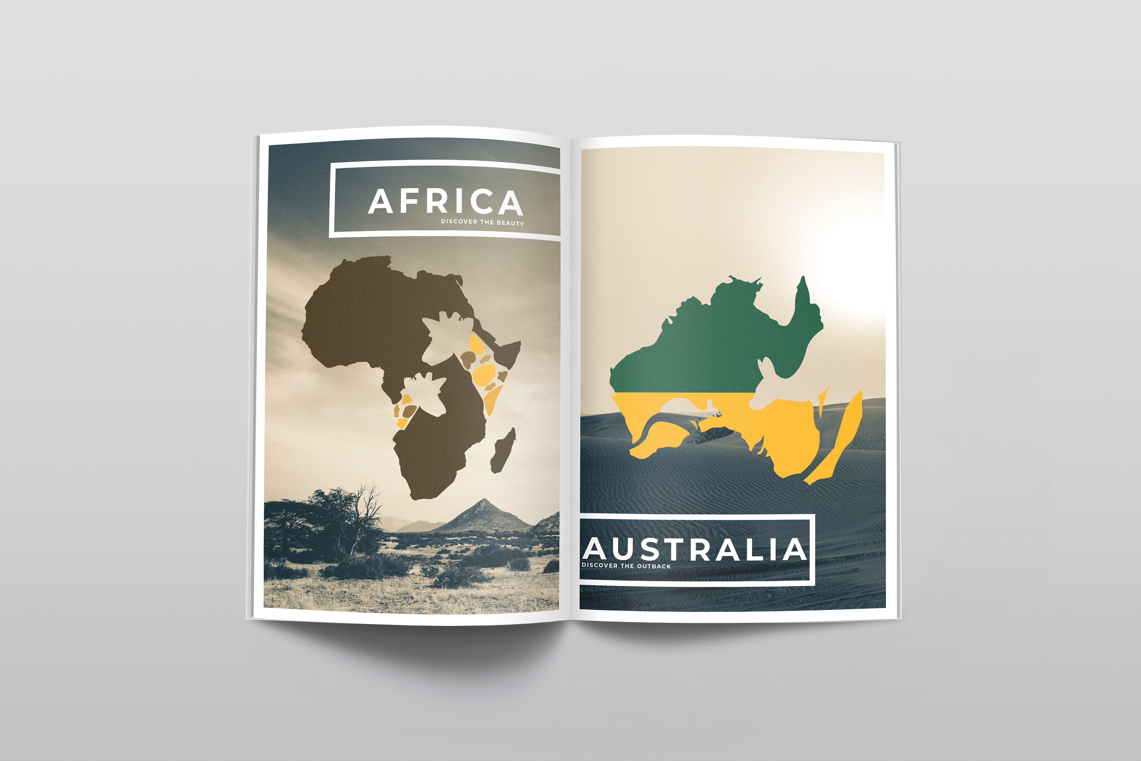 Mock magazine travel advertisements.
